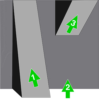 | Arquée : en général la préhension arquée s'effectue sur des prises plutôt petites qui sollicitent la force des doigts. Les arquées se tiennent avec la première phalange. |