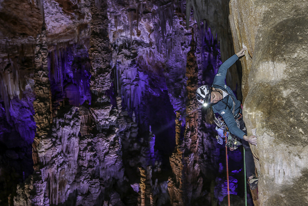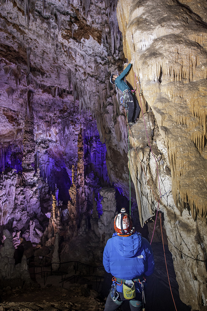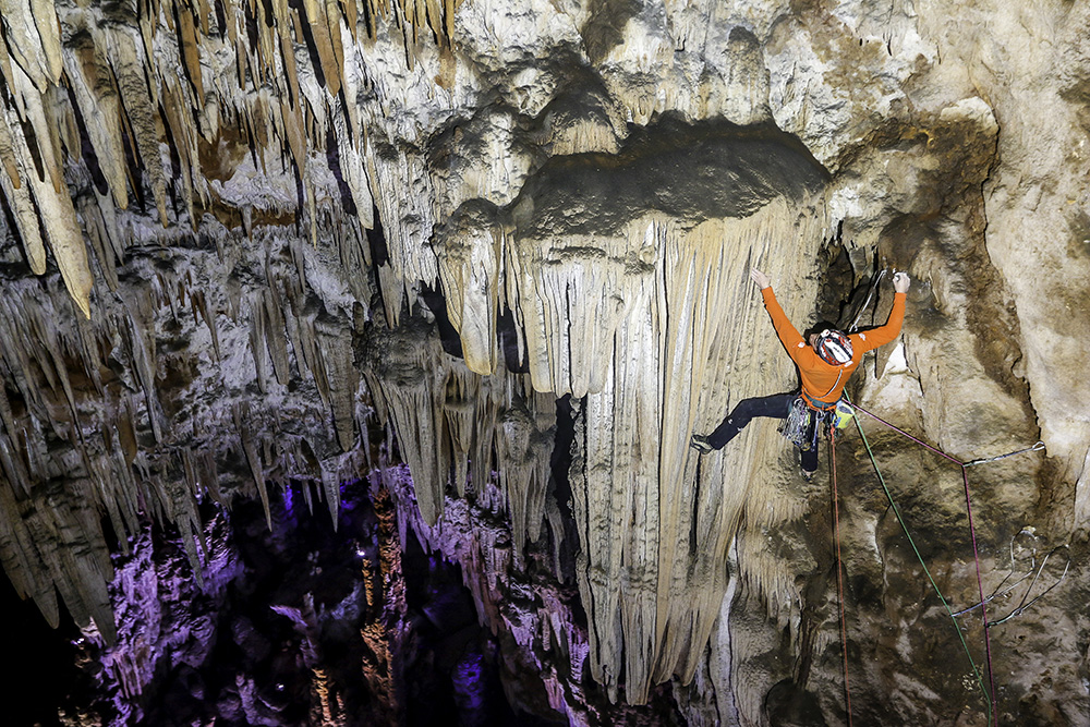 James et moi nous sommes rajoutés un peu de sel, en nous obligeant à grimper uniquement en Trad, ce qui nous projeta immédiatement dans des émotions fortes, typiques de nos plus lointaines aventures: grimper dans le noir, dans un silence absolu, les mains sur des draperies parfaites comme on n’en trouve jamais en surface, les protections précairement glissées entre ces mêmes formations, c’était une expérience hors du temps qui nous obligea à sortir le grand jeu en matière de Trad!