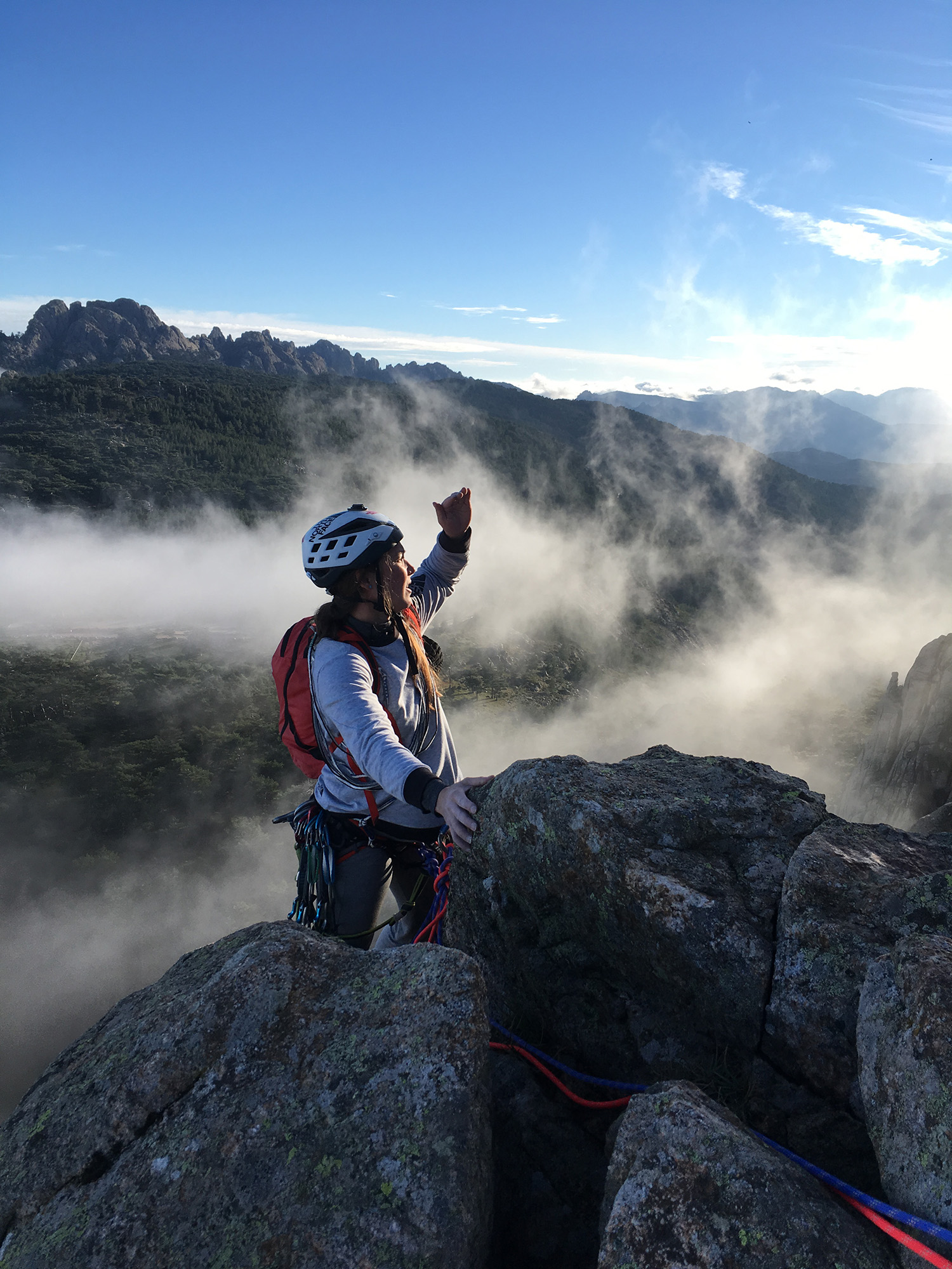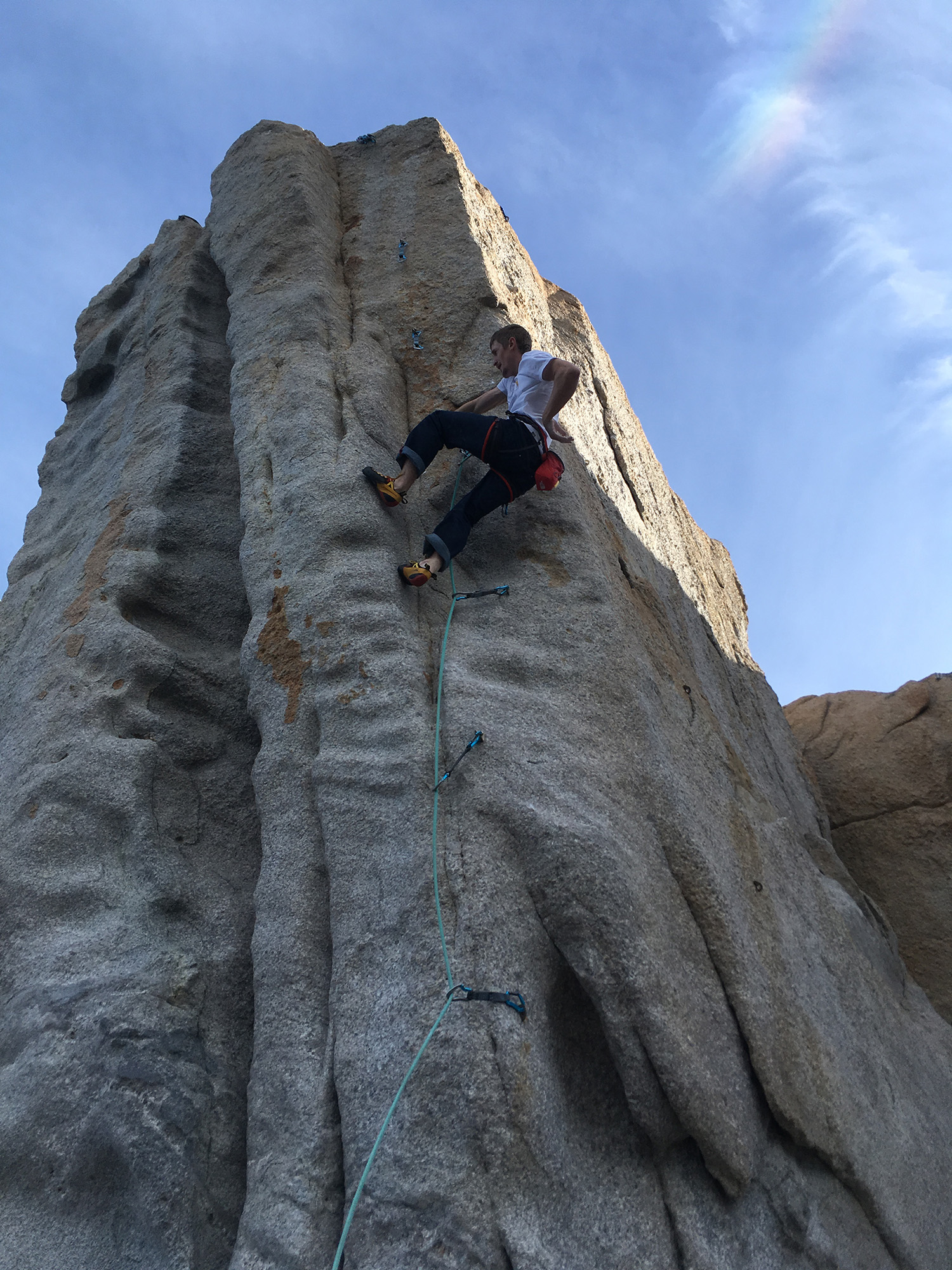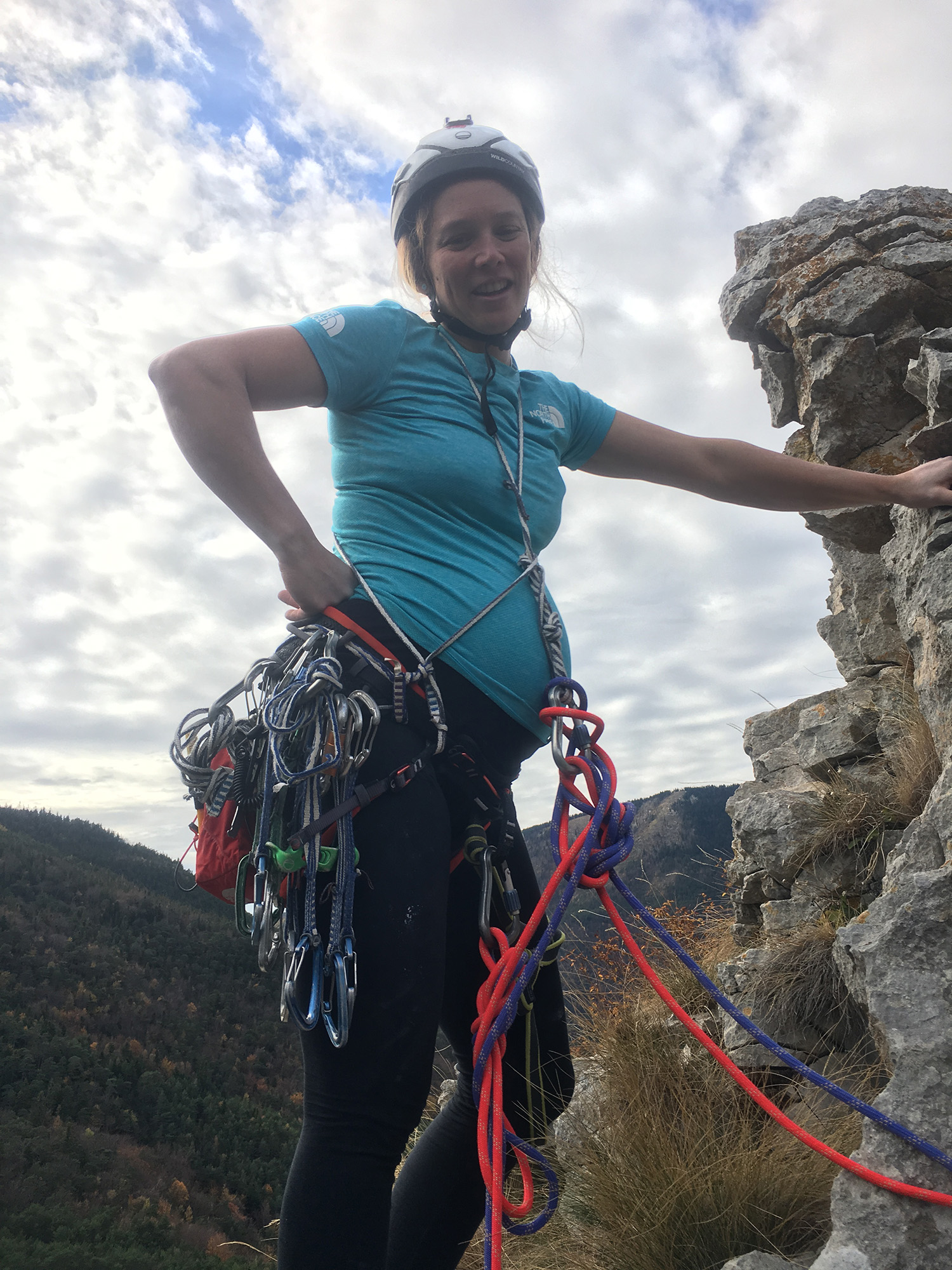 Choquant? Mais non, pas tant! Réfléchissez-y, en seconde, avec un baudrier adapté, et dans des grandes voies pas trop longues et assez faciles, j’ai la chance de continuer à bouger (et oui, il est maintenant prouvé que le sport facilite la grossesse), et James et moi nous baladons verticalement dans des paysages ahurissants, en amenant avec nous un petit bout qui n’a pas encore pointé son nez, mais semble déjà bien à l’aise en hauteur. Parce si conduire n’est pas de tout repos en cours de grossesse, grimper est un délice, un moment où mon bidou se relâche, et où bébé semble, comme James et moi, se régaler.
