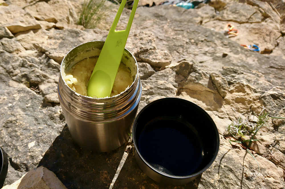 Un velouté, une soupe, une purée ou même votre repas habituel mais chaud, sont de bonnes idées à emporter avec vous au pied des falaises.