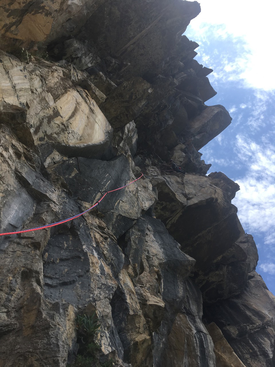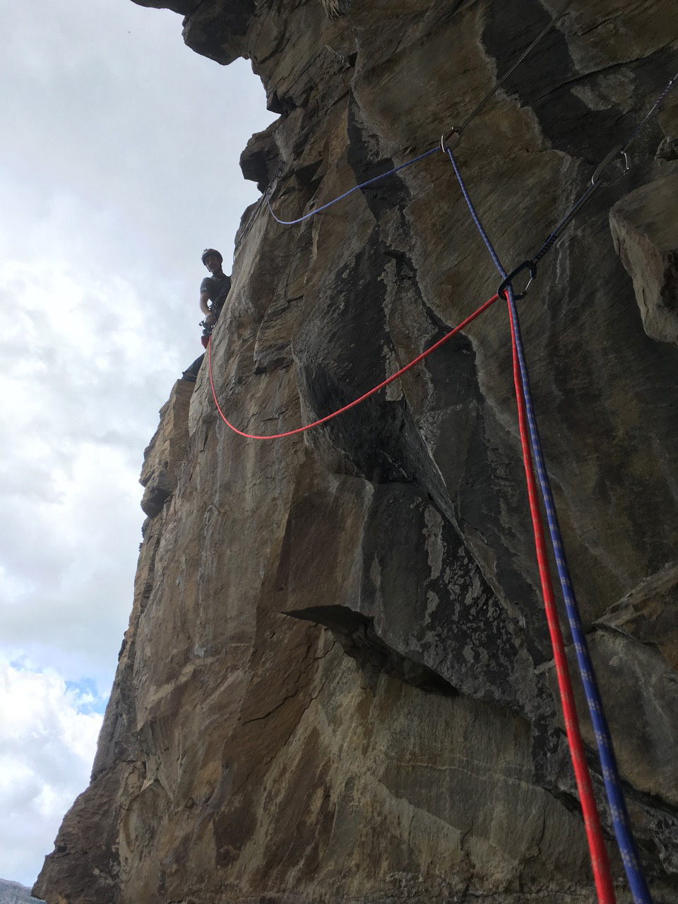 Je ne vais pas vous raconter les mouvements longueur par longueur, simplement résumer en quelques photos et ce petit mot de James : « si on me demandait de refaire cette voie ou les iles Féroé, je ne suis pas sur de pouvoir choisir ». Par ‘les Iles feroe’, James veut parler de sa récente Aventure de 700 mètres dans du gazon vertical et de la cendre volcanique pourrie, avec des oiseaux vomisseurs en cerise sur le gâteau. Si vous avez 15 minutes, allez voir « the land of Maybe ».